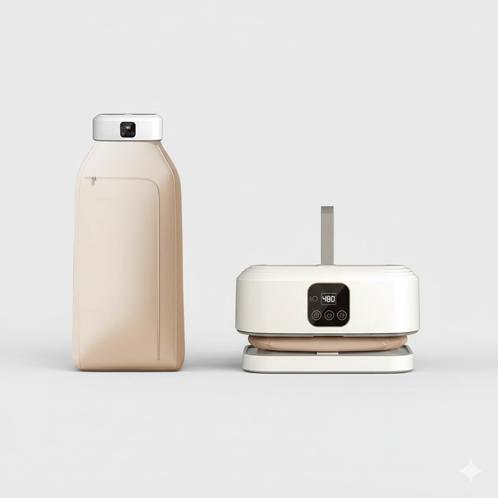 5 - När torkningen är klar fälls NordTork ihop till en kompakt låda där alla delar är samlade, redo att förvaras utan att ta plats.